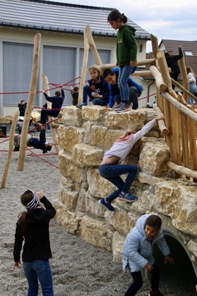 Umgestaltung der Schulhausumgebung mit zahlreichen Spielmöglichkeiten und Angeboten zur Sinneswahrnehmung, Wölflinswil AG