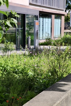 Neugestaltung Wildstaudenrabatte vor dem Hauptsitz Coop Schweiz, Basel BS