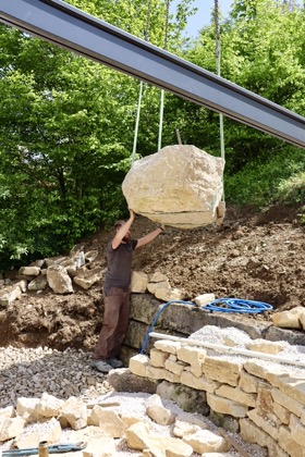 Privatgarten mit differenzierten Geländegestaltungen und Trockenmauern, Rodersdorf SO